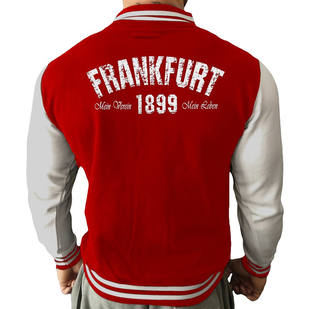 Collegejacke "FRANKFURT - Mein Verein 1899 Mein Leben" rot-weiß