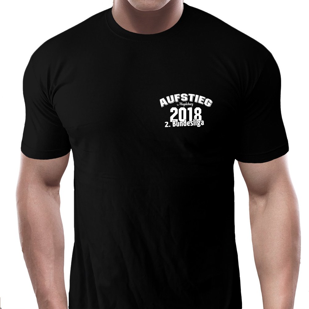 T-Shirt "TEAM 65 - AUFSTIEG Magdeburg 2018 2. LIGA BLAU-WEISS" schwarz